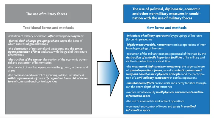 The following table, taken from a translation of the article, shows Gerasimov’s view of traditional warfare as opposed to New Generation Warfare:
