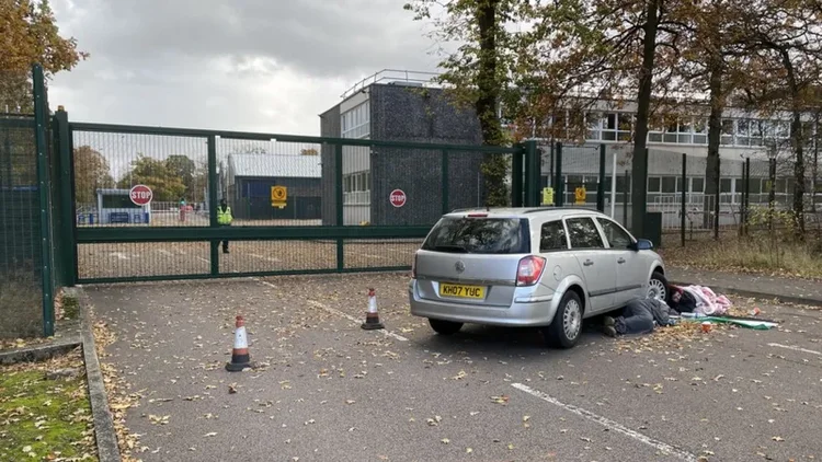 Figure 4: Palestine Action activists blockade a Lockheed Martin facility in Bedfordshire, UK, in a November 2023 protest (Source: BBC)