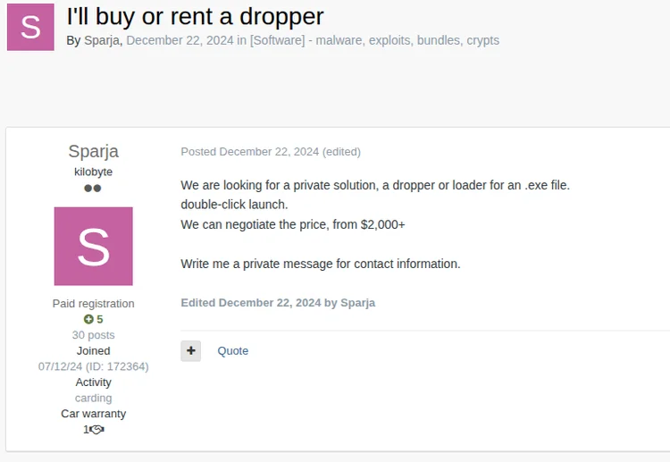 For example, one cluster, tracked as TAG-160, impersonates global logistics firms, using phishing lures and the ClickFix technique to distribute CastleLoader while spoofing legitimate emails and exploiting freight-matching platforms to target victims. Another cluster, tracked as TAG-161, impersonates Booking.com, also employing ClickFix to deliver CastleLoader and Matanbuchus and novel phishing email management tools. Further investigation through historical panel analysis linked the online persona “Sparja”, a user active on Exploit Forums, to potential GrayBravo-associated activities, based on the alias’s distinctiveness and related discussion topics.