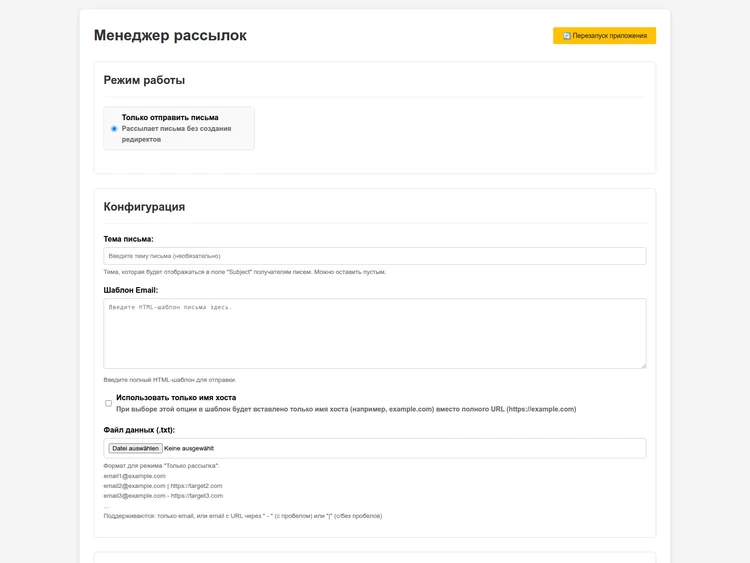 Website 1: Redirect and Email Manager (“Менеджер Редиректов и Email”)
