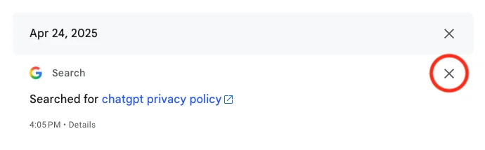 From here, you can also delete individual Google Search entries so that Google no longer stores that data. This will only apply to the individual search you made.