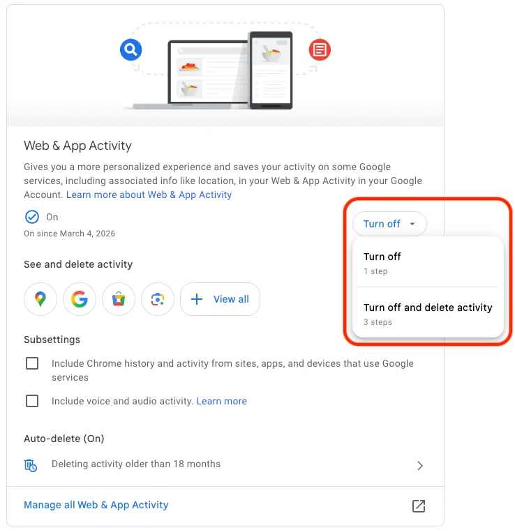 - Click on that quick control button we saw earlier: Web & App Activity